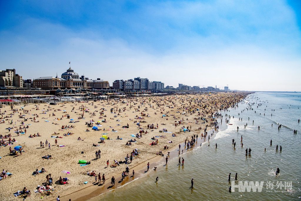 当地时间2020年5月21日报道,荷兰斯赫弗宁恩,当地天气晴好,民众涌向海滩,享受和煦的阳光。(供图:东方IC)