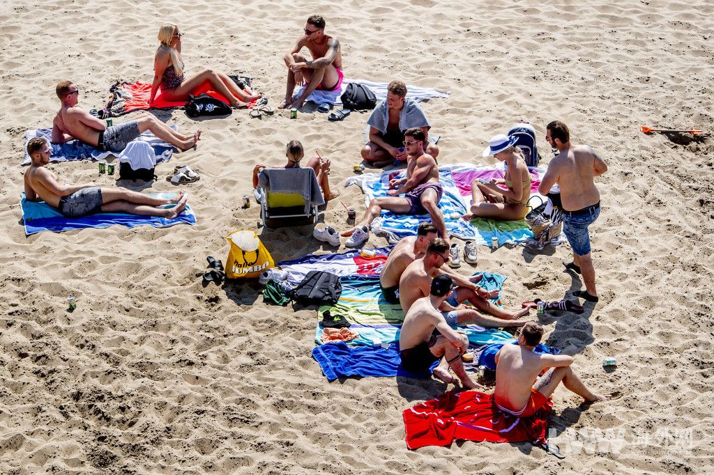 当地时间2020年5月21日报道,荷兰斯赫弗宁恩,当地天气晴好,民众涌向海滩,享受和煦的阳光。(供图:东方IC)
