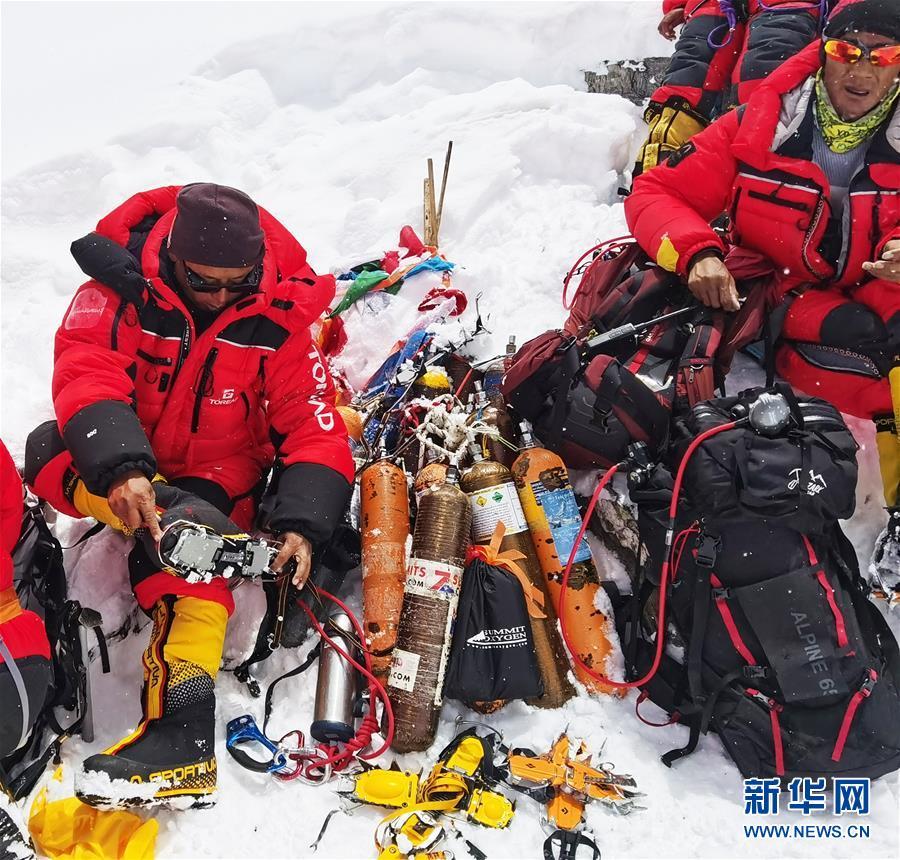 5月21日,测量登山队队员准备下撤。 记者从2020珠峰高程测量登山队获悉,修路(即在山体上铺设路绳,保证后续登山者安全攀登)队因珠峰海拔7790米以上区域持续强降雪,且路线上积雪过深,5月21日未能打通至顶峰的攀登路线。为保障队员安全,测量登山队决定撤回海拔6500米的前进营地,休整待命。 新华社特约记者 边巴 摄