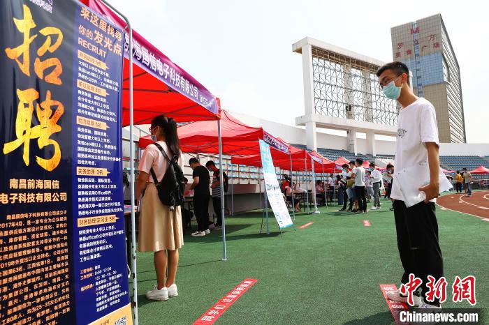 图为面试的毕业生相互之间保持一定的社交距离。 刘占昆 摄