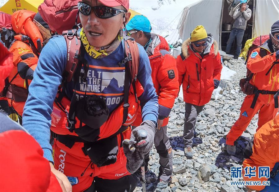 5月24日,2020珠峰高程测量登山队部分人员从海拔6500米的前进营地出发。新华社特约记者 拉巴 摄 图片来源:新华网
