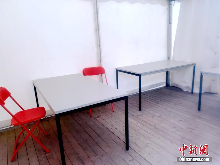 图为当地时间5月24日,柏林一家私人诊所在该市市中心一处停车场内设立的新冠抗体检测点内的采血室。中新社记者 彭大伟 摄