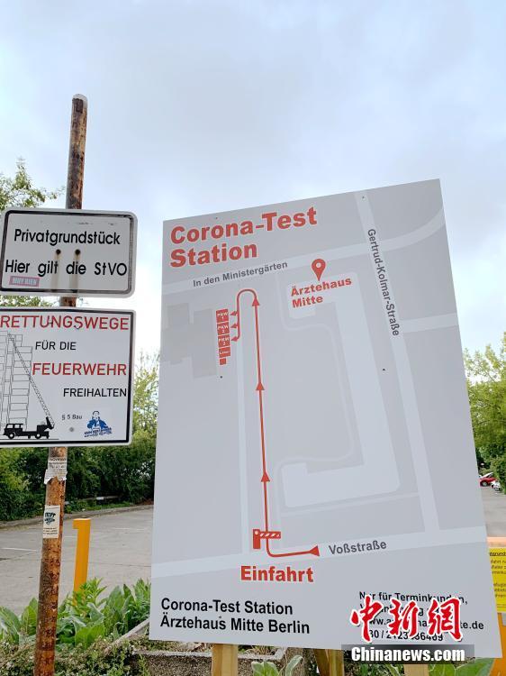 柏林一家私人诊所在该市市中心一处停车场内设立的新冠抗体检测点。中新社记者 彭大伟 摄