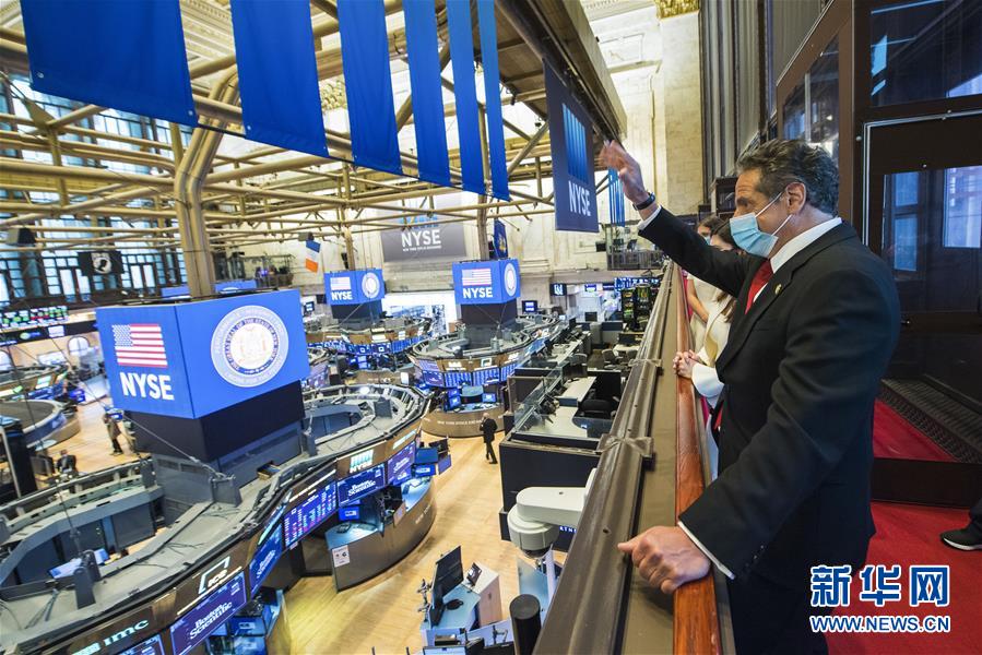 5月26日,在美国纽约证券交易所,纽约州州长安德鲁·科莫参观交易大厅。 新华社发(纽约州州长办公室供图 达伦·麦吉摄)