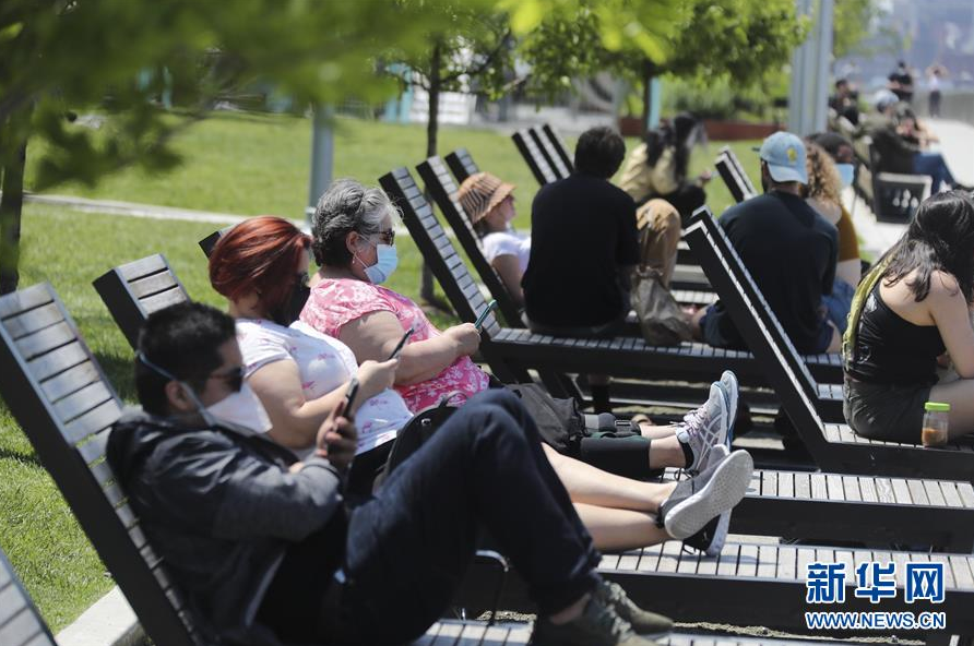 5月26日,在美国纽约布鲁克林一处公园,人们在长椅上享受阳光。 美国约翰斯·霍普金斯大学26日发布的新冠疫情最新统计数据显示,截至26日20时32分(北京时间27日8时32分),美国确诊病例达1680625例,死亡病例为98902例。 新华社记者 王迎 摄