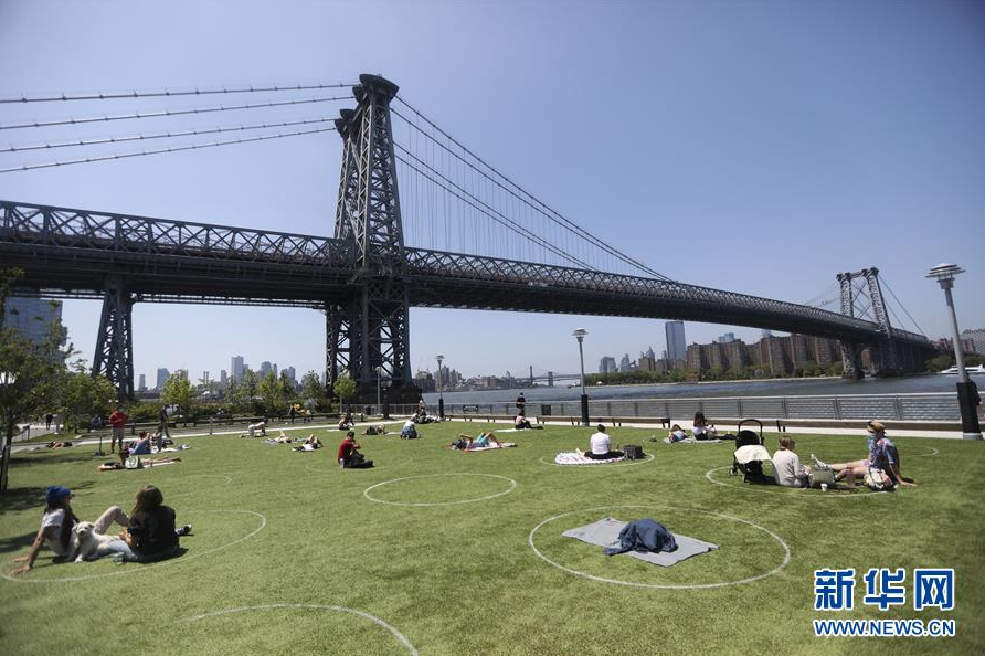 5月26日,在美国纽约布鲁克林一处公园,人们在草坪上享受阳光。 美国约翰斯·霍普金斯大学26日发布的新冠疫情最新统计数据显示,截至26日20时32分(北京时间27日8时32分),美国确诊病例达1680625例,死亡病例为98902例。 新华社记者 王迎 摄