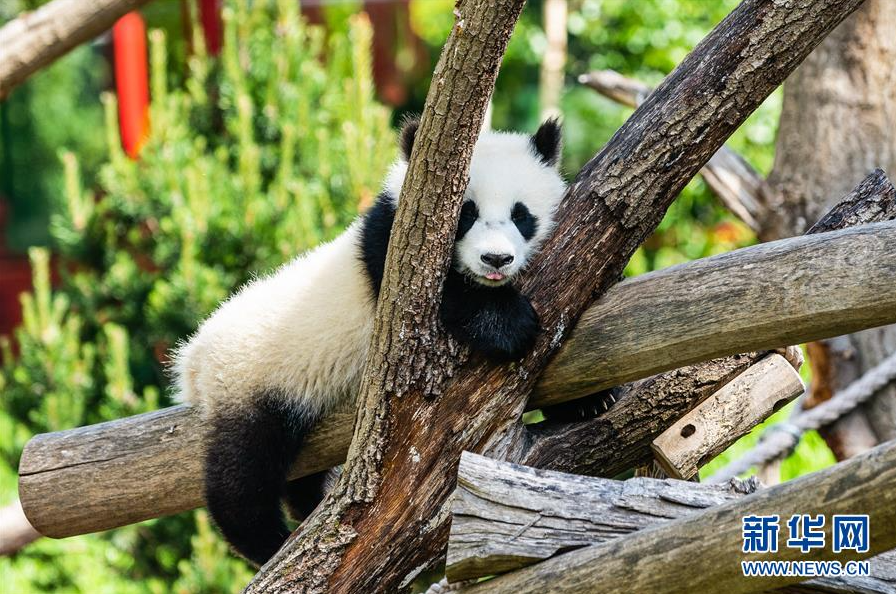 5月28日,一只大熊猫幼崽在德国柏林动物园休息。 德国柏林动物园因新冠肺炎疫情闭园一个多月后于4月28日重新开门迎客。尽管动物园仍然采取严格限制入园人数等防疫措施,但仍有不少游客来到熊猫馆观看旅德大熊猫及它们诞下的双胞胎幼崽。 新华社发(张平摄)