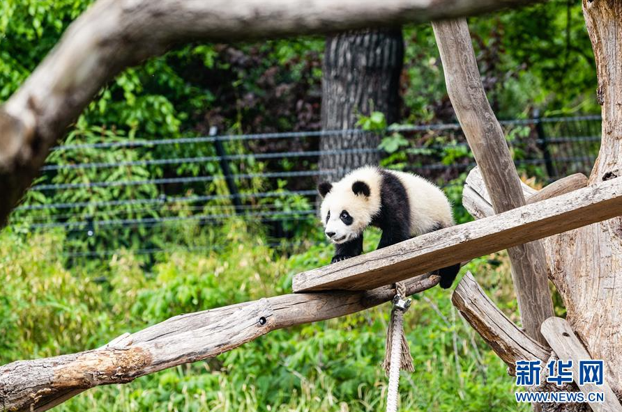 5月28日,一只大熊猫幼崽在德国柏林动物园玩耍。 德国柏林动物园因新冠肺炎疫情闭园一个多月后于4月28日重新开门迎客。尽管动物园仍然采取严格限制入园人数等防疫措施,但仍有不少游客来到熊猫馆观看旅德大熊猫及它们诞下的双胞胎幼崽。 新华社发(张平摄)