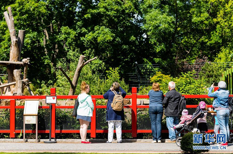 5月28日,在德国柏林动物园,游客观看大熊猫。 德国柏林动物园因新冠肺炎疫情闭园一个多月后于4月28日重新开门迎客。尽管动物园仍然采取严格限制入园人数等防疫措施,但仍有不少游客来到熊猫馆观看旅德大熊猫及它们诞下的双胞胎幼崽。 新华社发(张平摄)