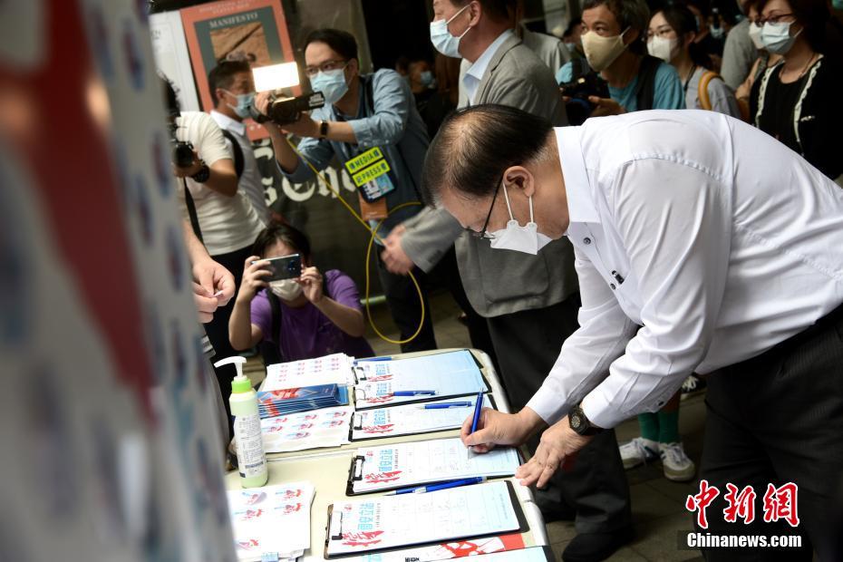 5月29日中午,全国人大常委谭耀宗签名力撑涉港国安立法。“香港各界撑国安立法联合阵线”于香港中环毕打街街站举行撑涉港国安立法签名活动,港区人大代表等人到场签名支持并慰问在场工作人员感谢他们辛苦付出,力撑涉港国安立法。 中新社记者 李志华 摄