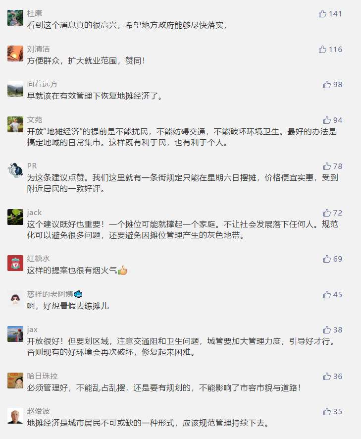 多地试水,加国家层面为地摊经济释放更大发挥空间的信号,得到了各方点赞。网友们的反应,是民意的最好呈现。