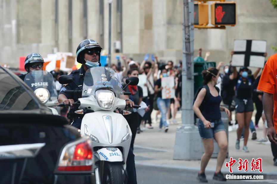 当地时间5月29日,纽约上千民众聚集在曼哈顿佛利广场,抗议明尼苏达州明尼阿波利斯市非裔男子乔治·佛洛依德遭警察暴力执法致死。图为警察在佛利广场周边严密布防。 中新社记者 廖攀 摄