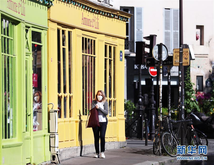 5月29日,在法国巴黎圣马丁运河附近,一名女子戴口罩走在街上。 新华社记者 高静 摄