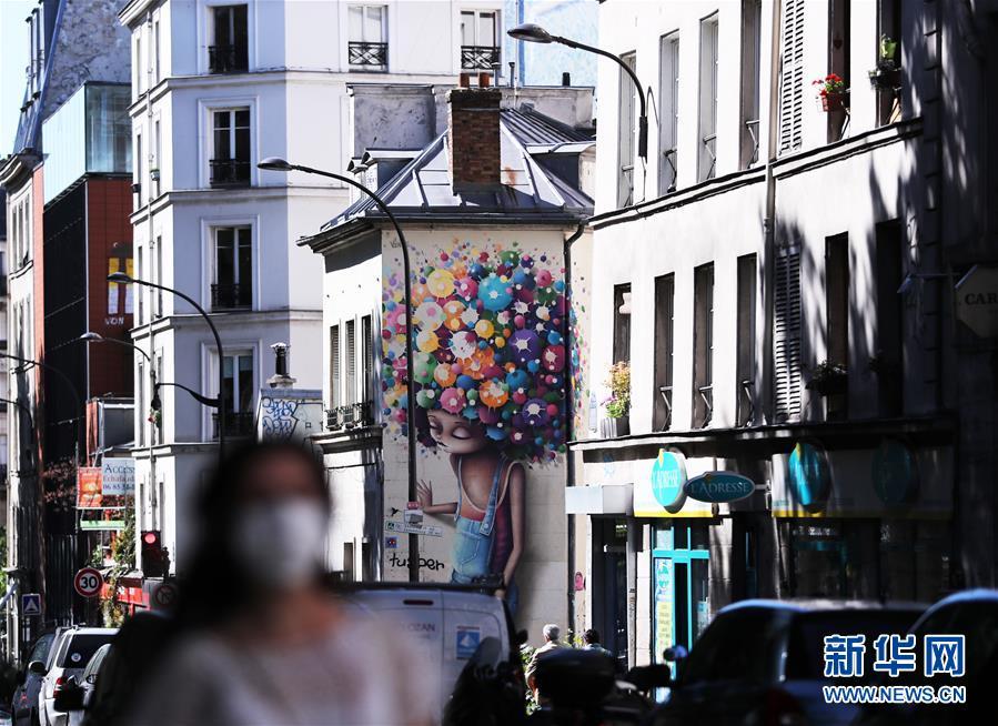 5月29日,在法国巴黎圣马丁运河附近,一名女子戴口罩走在街上。 新华社记者 高静 摄