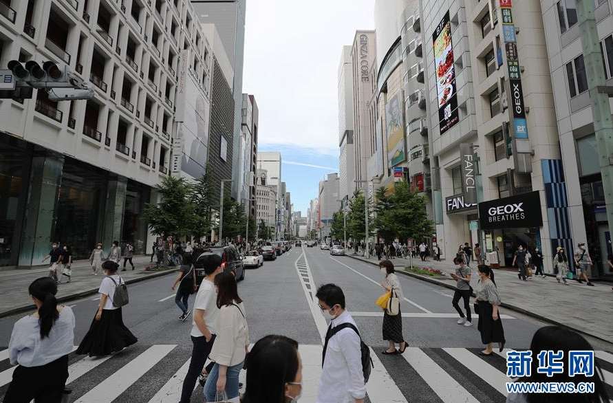 5月30日,行人戴口罩走过日本东京银座街头。 当日是日本东京解除紧急状态后首个周六,各商圈人流量明显增多。日本首相安倍晋三5月25日晚宣布,日本全国解除紧急状态。此前日本47个都道府县中已仅剩东京都、北海道等5地维持紧急状态。 新华社记者 杜潇逸 摄