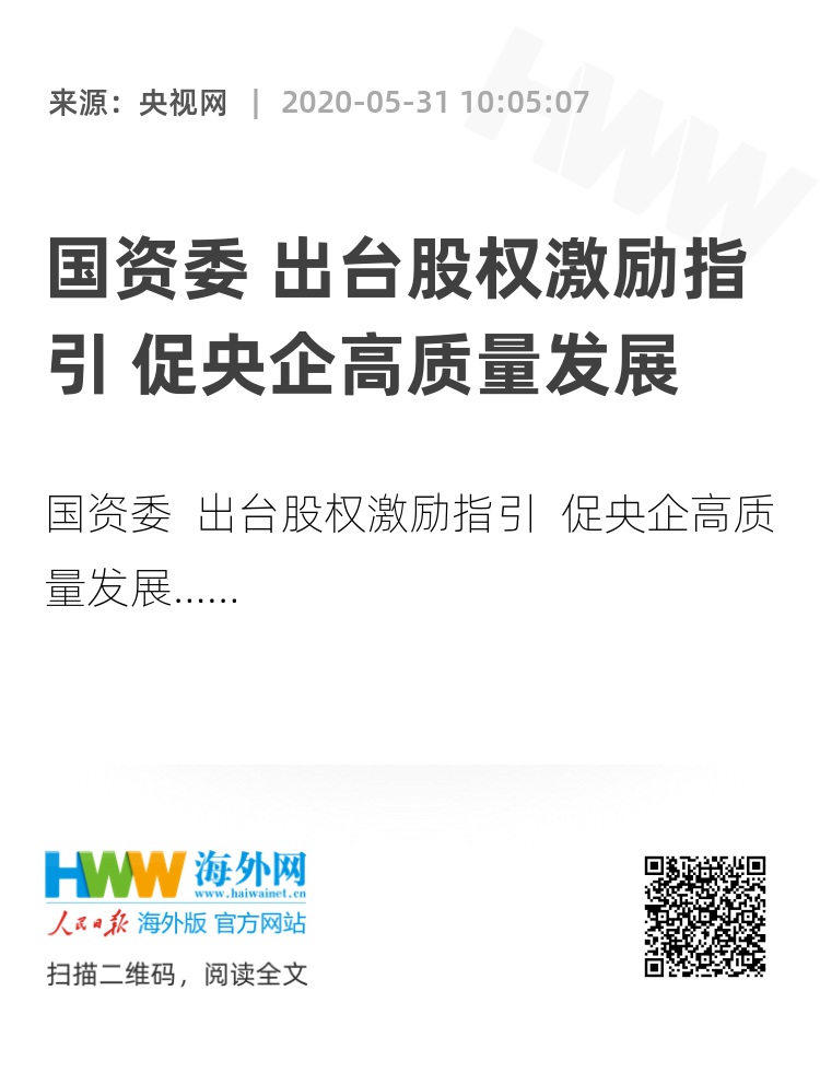 国资委 出台股权激励指引 促央企高质量发展