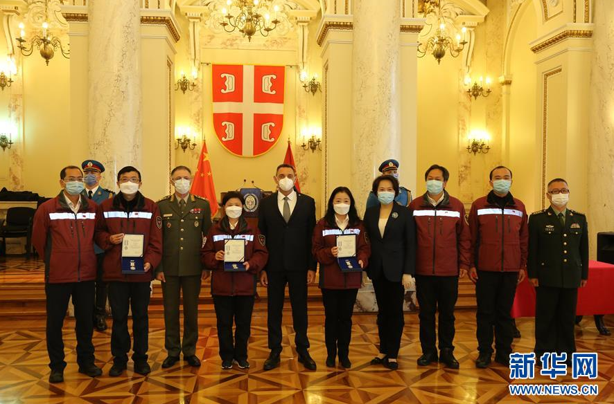 塞尔维亚向3名中国抗疫专家授勋
