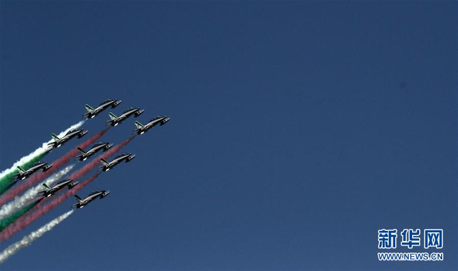 6月2日,意大利“三色箭”飞行表演队从罗马上空飞过,在天空中留下代表意大利国旗的三色彩烟。 当日,意大利“三色箭”飞行表演队在意首都罗马举行飞行表演,庆祝6月2日意大利“共和国日”,同时激励民众团结抗疫。 新华社发(埃丽萨·林格利亚摄)