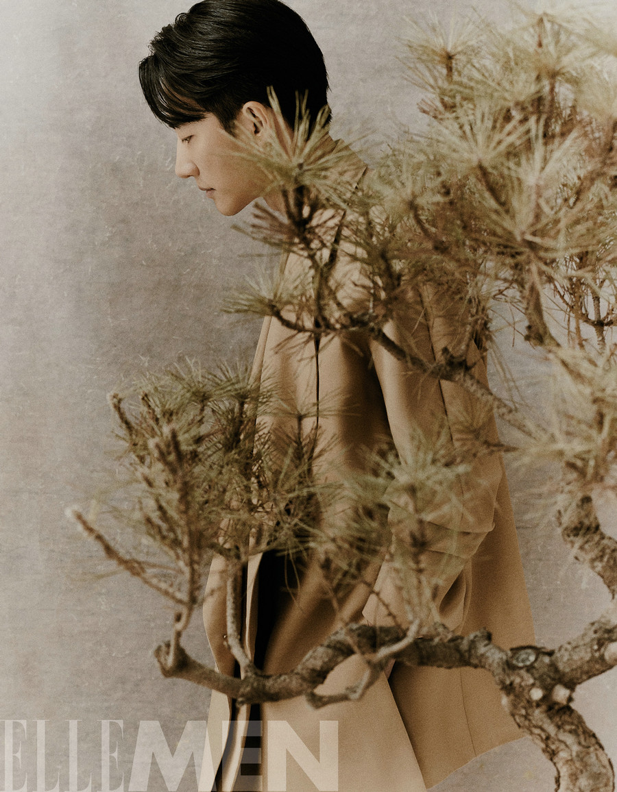 内页大片中,黄轩或一袭皮质风衣,风度翩翩,成熟儒雅;或身穿棕色长款西装外套,在几株松针的映衬下,安静又不乏张力;黑色毛呢大衣和黑色西装的叠穿法,配以蓝色印花衬衫,复古与摩登并存。黄轩坚毅的眼神里,更透露出一种宁静的力量。