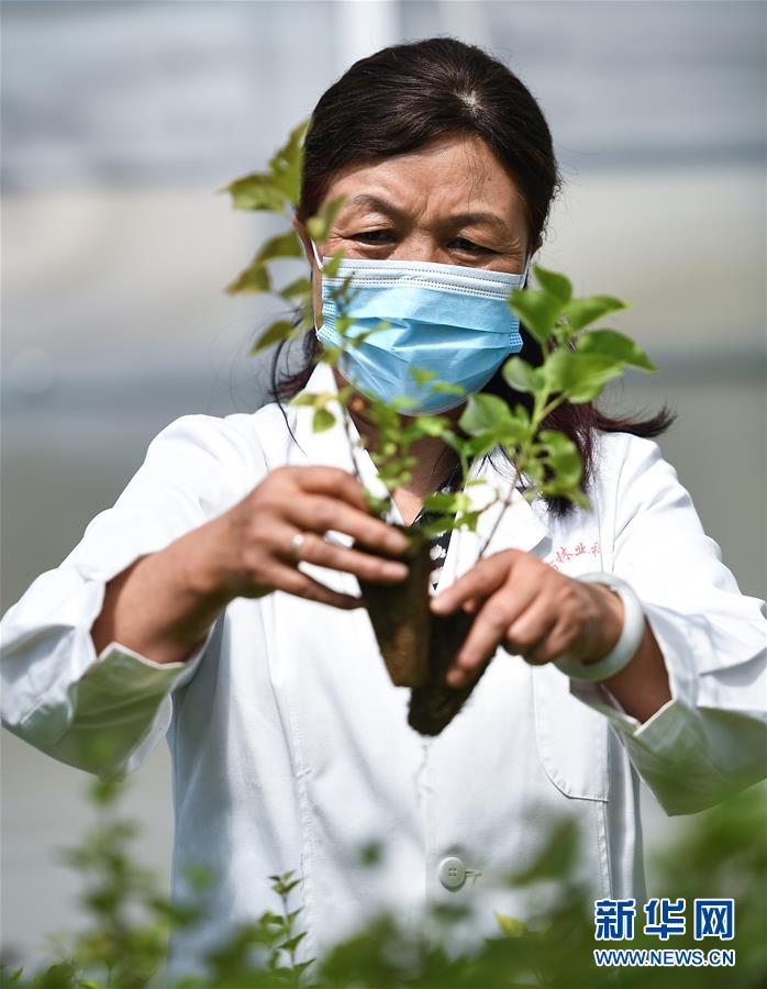 张锦梅1998年开始成批栽培各类丁香树苗,2013年她被选派到西宁市林业科学研究所,负责西宁市乃至青海省林业新技术的开发和研究。 6月3日,在西宁市林业科学研究所,张锦梅在查看丁香幼苗的长势。 新华社记者 薛玉斌 摄