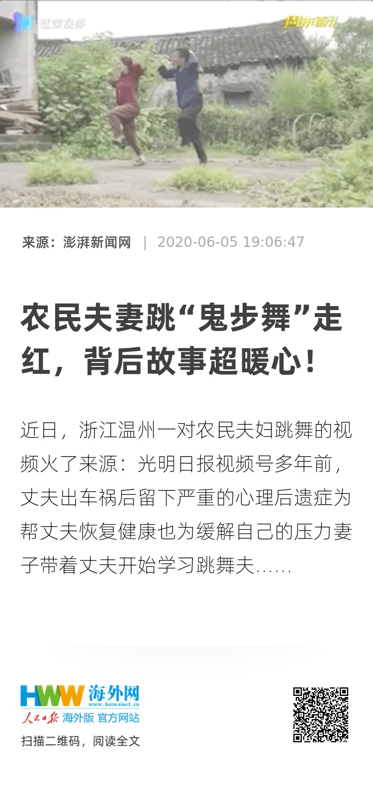 遭遇车祸 舞蹈让农民夫妇走出阴霾