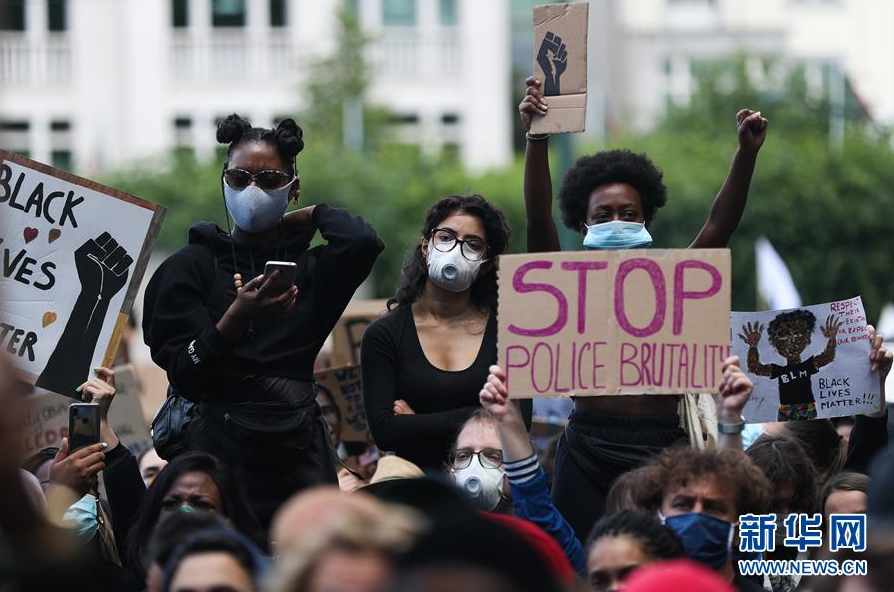 比利时举行示威活动抗议美国警察暴力执法和种族主义