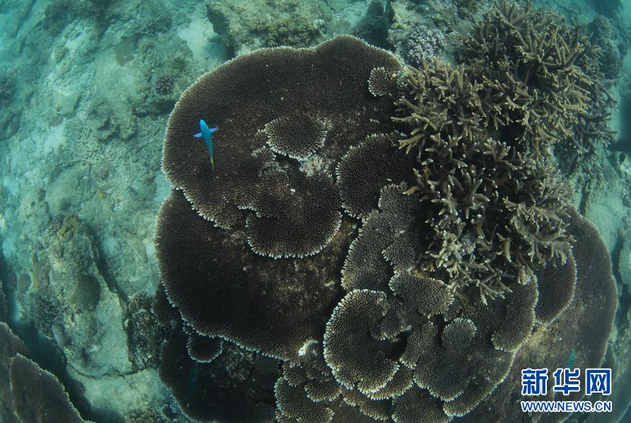 在海南三亚蜈支洲岛海域,珊瑚在海洋牧场茁壮成长(3月28日摄)。 新华社记者 杨冠宇 摄
