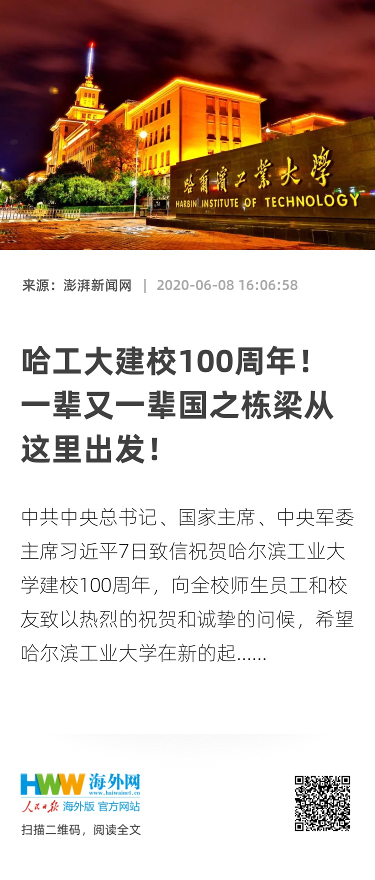 冰城夏都,黄海之滨,南国鹏城,千里跨越,百年薪火,一世纪规格功夫,新百年世界一流。6月7日,一校三区的哈尔滨工业大学举行建校一百周年校庆活动。