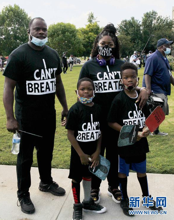 6月8日,在美国得克萨斯州休斯敦市,人们在教堂前排队等待瞻仰弗洛伊德遗体。 当日,因白人警察暴力执法而死亡的非洲裔美国人乔治·弗洛伊德遗体公众瞻仰活动在美国南部得克萨斯州休斯敦市一座教堂内举行。 新华社发(宋穹摄)