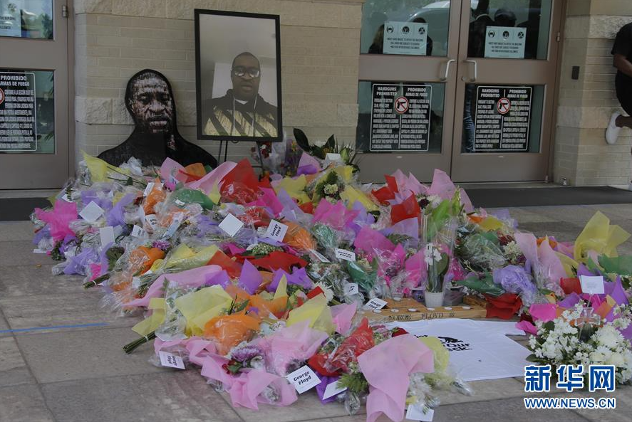 6月9日,在美国得克萨斯州休斯敦,举行弗洛伊德葬礼的教堂外摆满鲜花。 因警察暴力执法而死亡的非裔美国人弗洛伊德的葬礼9日在其“家乡”——休斯敦市的一座教堂举行。葬礼结束后,弗洛伊德的遗体被运往休斯敦一处墓地安葬。 新华社发(劳承跃摄)