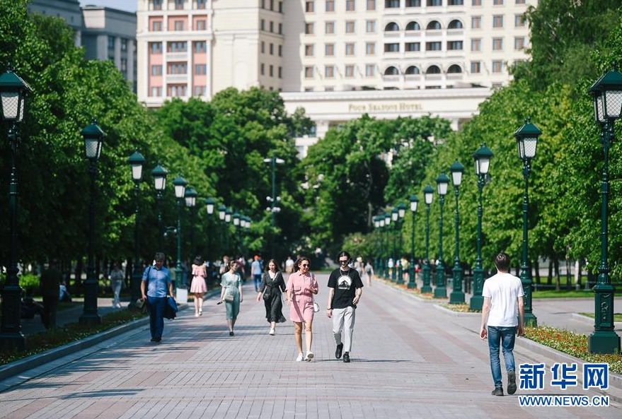 6月9日,人们走在俄罗斯首都莫斯科一处公园内。新华社发(叶甫盖尼·西尼岑摄)