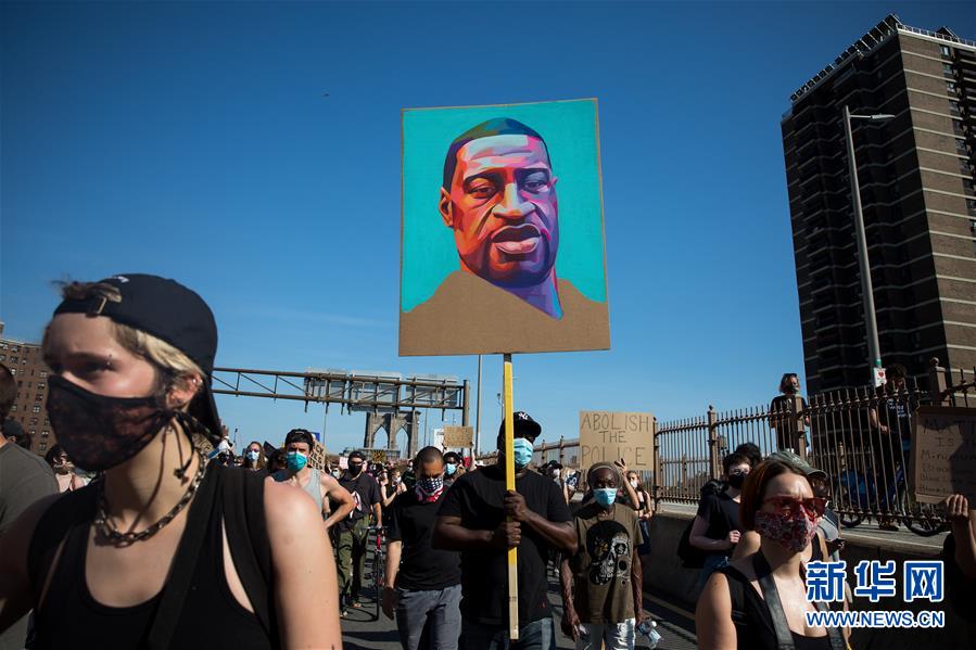 6月9日,人们在美国纽约街头参加抗议活动。 美国明尼阿波利斯市警察暴力执法致非裔男子乔治·弗洛伊德死亡,由此引发的抗议活动当日在美国纽约继续进行。 新华社发(郭克摄)