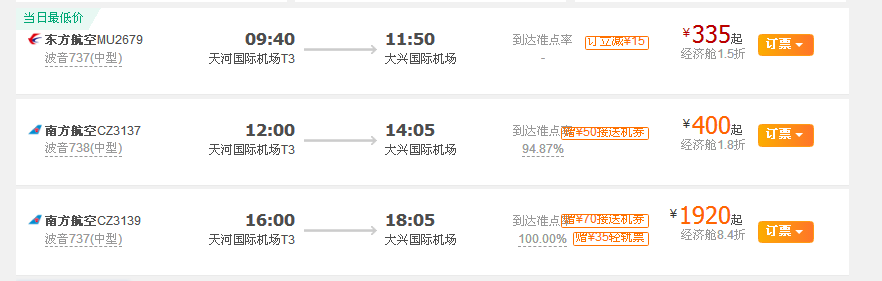 记者查询到,目前每天从武汉到北京有三趟直飞航班可选,分别是9点40分、12点和16点起飞,均落地大兴国际机场。以6月12日的航班为例,东航武汉飞北京,票价低至335元起售。