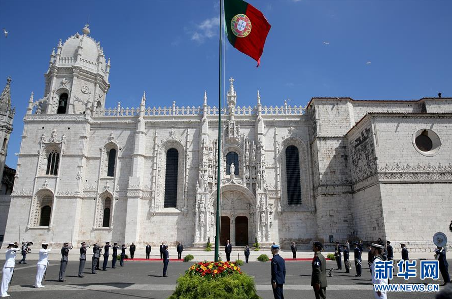 6月10日,葡萄牙总统德索萨在里斯本帝国广场出席庆祝活动。 当日,葡萄牙举行国庆日庆祝活动。 新华社发(佩德罗·菲乌萨 摄)