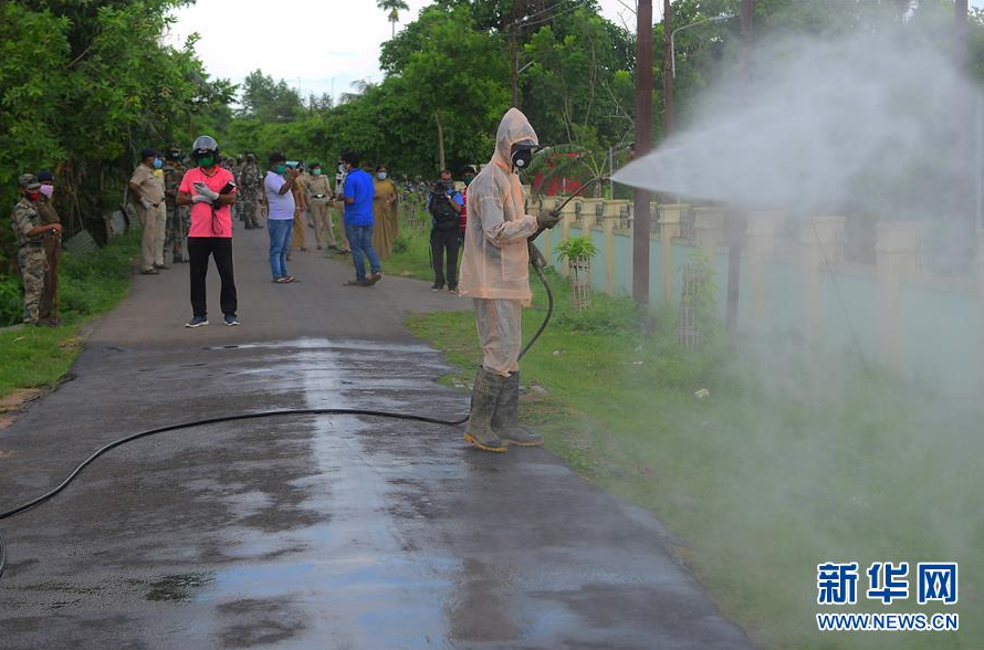 6月10日,工作人员在印度东北部特里普拉邦阿加尔塔拉的一处火葬场喷洒消毒剂。 新华社发