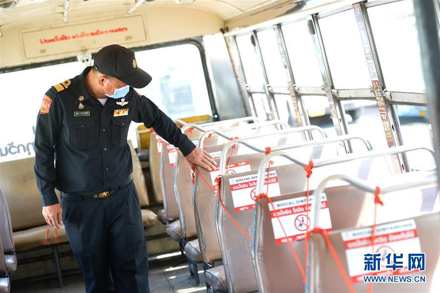 为控制疫情,泰国政府要求从6月11日起,全国所有乘坐巴士的民众每次乘车时必须扫码登录官方定位程序。 新华社发(拉亨摄)