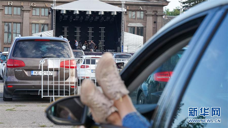 6月11日,由于新冠疫情的影响,一场特殊的“汽车音乐节”在拉脱维亚里加举办。人们在汽车上通过特定的频率收听乐队的演奏,以安全的方式享受音乐。 新华社发(亚尼斯摄)