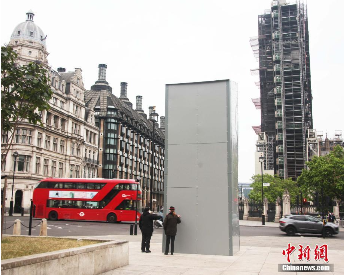 当地时间6月12日,伦敦一些历史人物塑像被支架和金属板包裹保护起来,以防在游行示威中被涂鸦和毁坏。图为坐落于伦敦议会广场的英国历史名人、英国前首相温斯顿·丘吉尔(Winston Churchill)塑像,被金属板材严严实实包裹起来。 中新社记者 张平 摄
