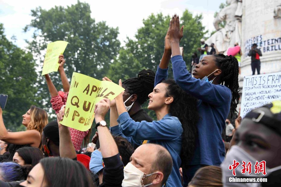 当地时间6月13日,法国首都巴黎万余人继续示威抗议种族歧视及警察暴力。由于当天示威人群密集,使得新冠肺炎疫情防控面临巨大挑战。 中新社记者 李洋 摄