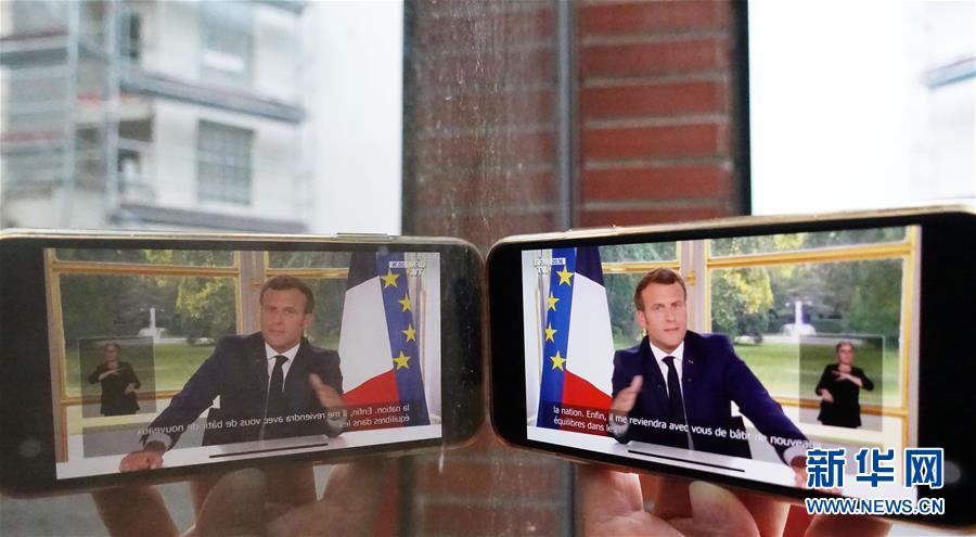 法国总统马克龙14日发表全国电视讲话,宣布法国将进入“解禁新阶段”,全面复工复课并加快经济复苏。新华社记者 高静 摄