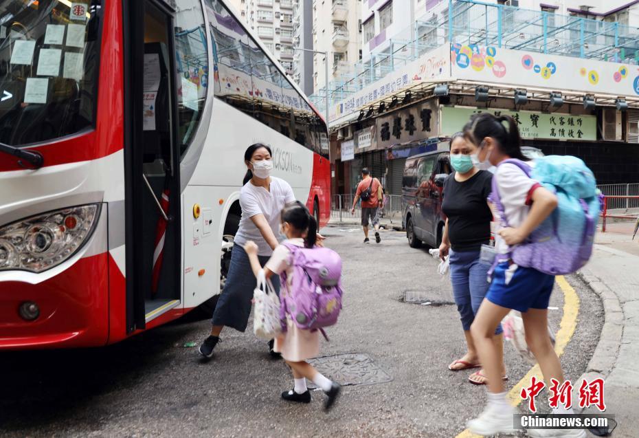 6月15日,香港疫情缓解之下,幼稚园高班至小三学生复课,在北角区不少家长带小朋友提早出门。家长表示,疫情慢慢缓解了,学校也做好防疫措施,不太担心小朋友复课。另外,中三至中五跨境学生亦于当天复课。中新社记者 洪帆 摄
