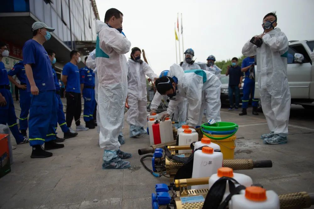 6月16日,北京蓝天救援队队员在岳各庄批发市场准备消杀工具。 来源:新华社 摄影:陈钟昊 监制:刘洪 陈璟春 编辑:谷朋 校对:张玲琳