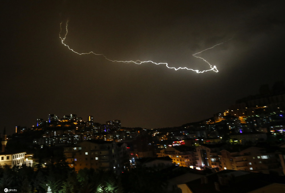 当地时间2020年6月17日,土耳其安卡拉,当地夜晚降雨,天空电闪雷鸣。(供图:东方IC)