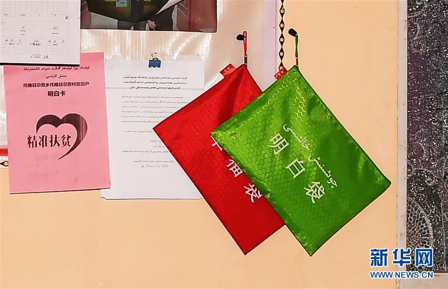 这是5月22日在新疆和田地区于田县托格日尕孜乡拍摄的村民家里的“明白袋”。“明白袋”记录了每家的基本情况,包括人口、土地、牛羊和收入等。新华社记者沙达提摄