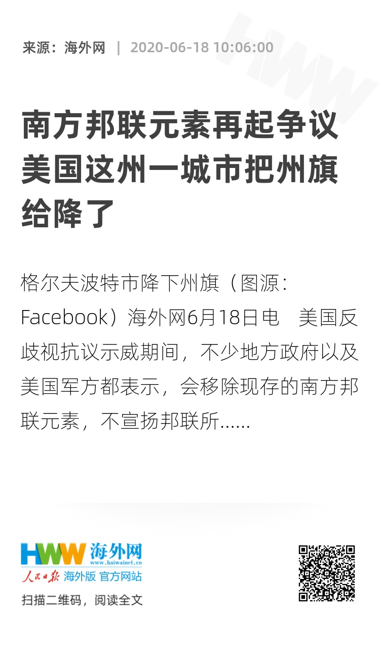 市民也纷纷表达了各自观点。“如果这面旗没有问题,那为什么每次出现种族歧视行为时,都有人举着它?”一位市民说道,他认为州旗是对除白人外所有群体的侮辱。不过,也有人发生支持:“这是打选民的脸。我反对种族主义,但我也不认为这面旗代表种族主义。”