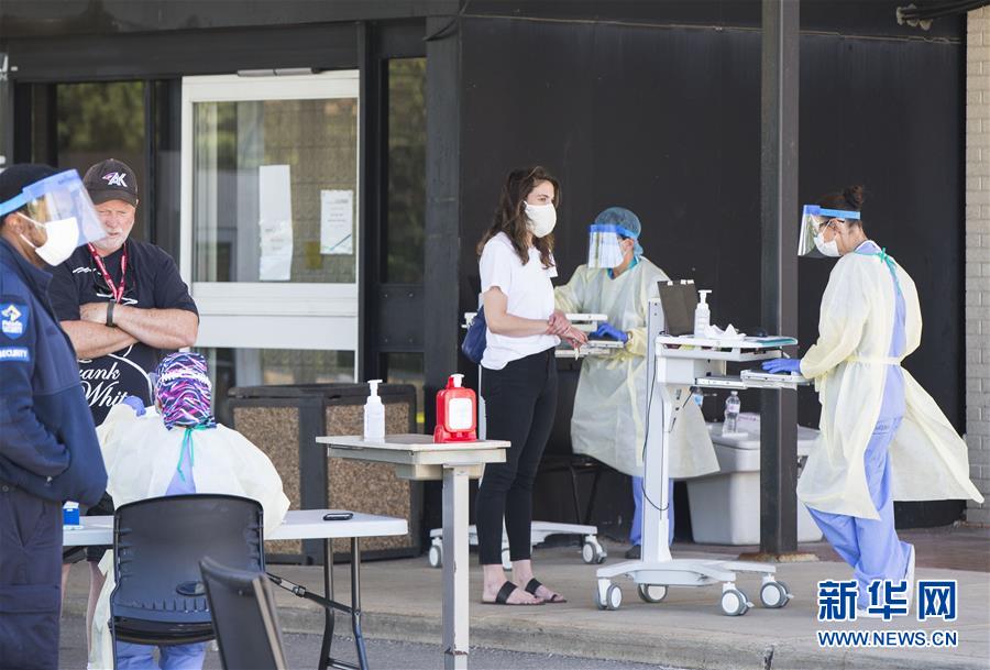 6月18日,在加拿大多伦多,人们在一处新冠病毒检测中心外登记。 据加拿大电视台报道,截至18日下午,加拿大累计新冠确诊病例100148例,累计死亡病例8299例。 新华社发(邹峥摄)