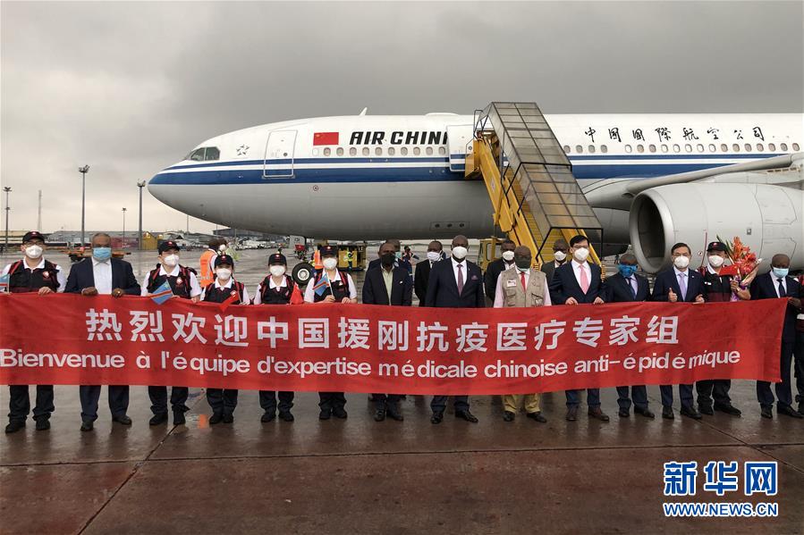 5月12日,在刚果(金)首都金沙萨,中国抗疫医疗专家组成员与中国驻刚果(金)大使馆人员及刚方人员合影。新华社发(周广林摄)
