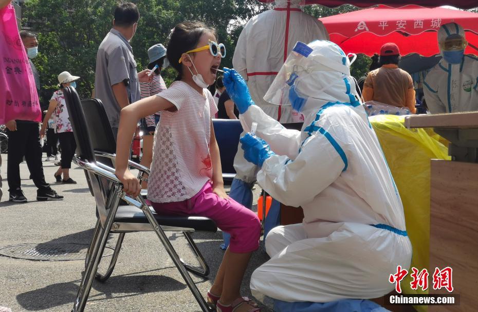 6月19日,北京西城一实施封闭管理的社区,工作人员为社区居民进行核酸检测。 中新社记者 杜洋 摄