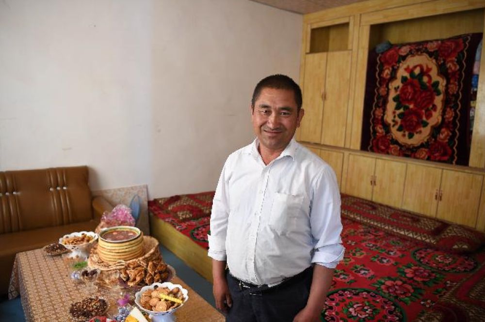 5月25日,在新疆和田地区策勒县恰哈乡恩尼里克村,如则麦麦提·麦提克日木在家中。新华社记者沙达提摄