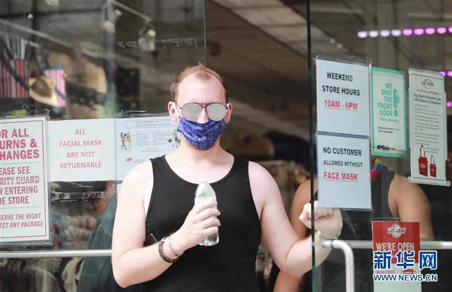 6月19日,一名戴口罩的男子走出美国纽约一家超市。 美国约翰斯·霍普金斯大学19日发布的新冠疫情最新统计数据显示,截至美国东部时间19日12时33分(北京时间20日0时33分),美国累计确诊病例2203659例,累计死亡病例118659例。 新华社记者 王迎 摄